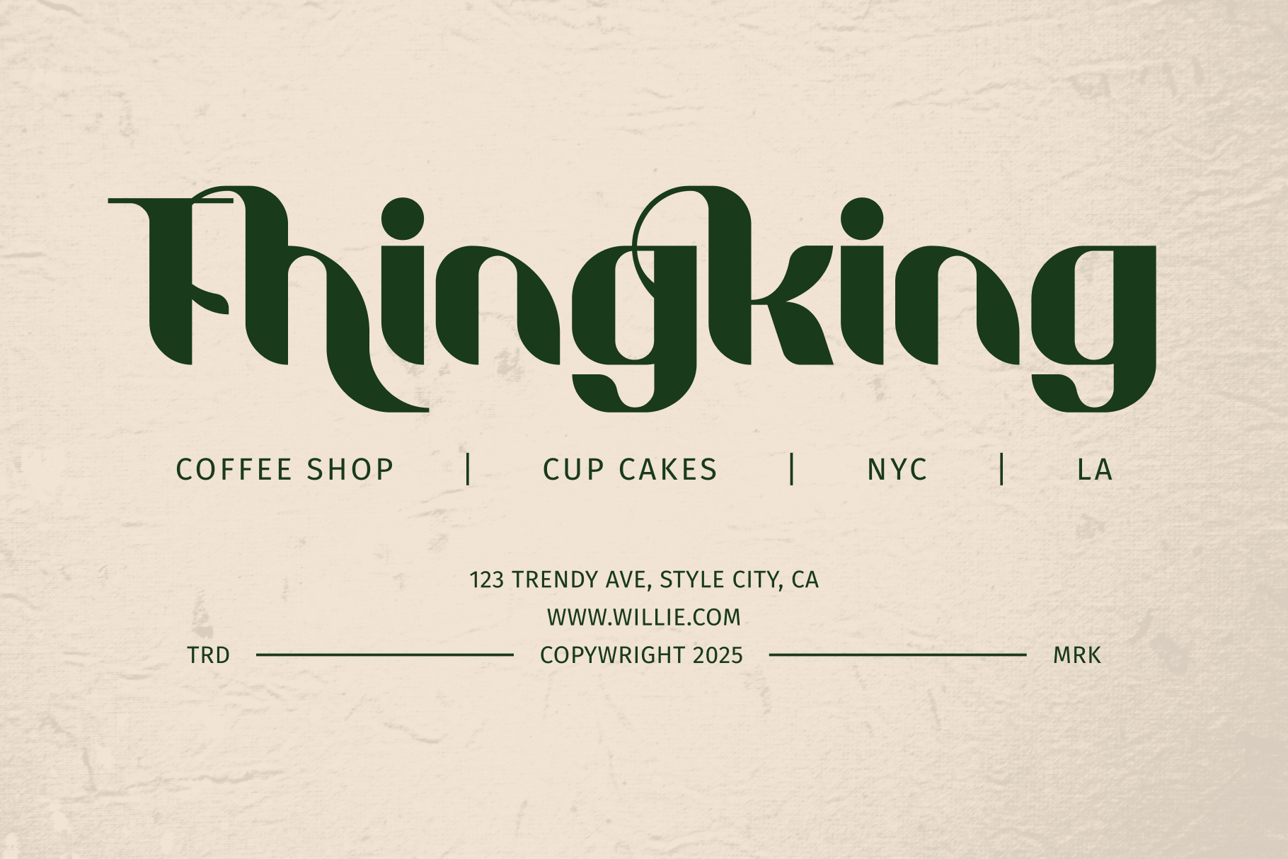 Step back in time with Willie, a stunning display font that captures the timeless elegance of vintage design. Its unique, flowing letterforms evoke a sense of nostalgia, making it perfect for projects that demand a touch of retro charm and sophistication. Whether you're designing posters, creating memorable logos, or crafting branding for a classic-inspired business, Willie adds a distinctive personality that stands out. The font’s bold curves and graceful lines are a tribute to a bygone era of adventure and style. Let Willie transport your audience and give your designs an unforgettable, classic feel.